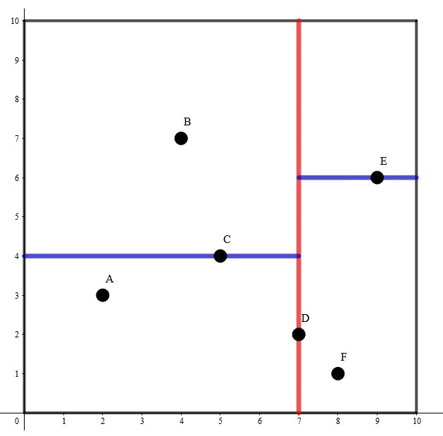 其构建出 k-D Tree 的形态可能是这样的: