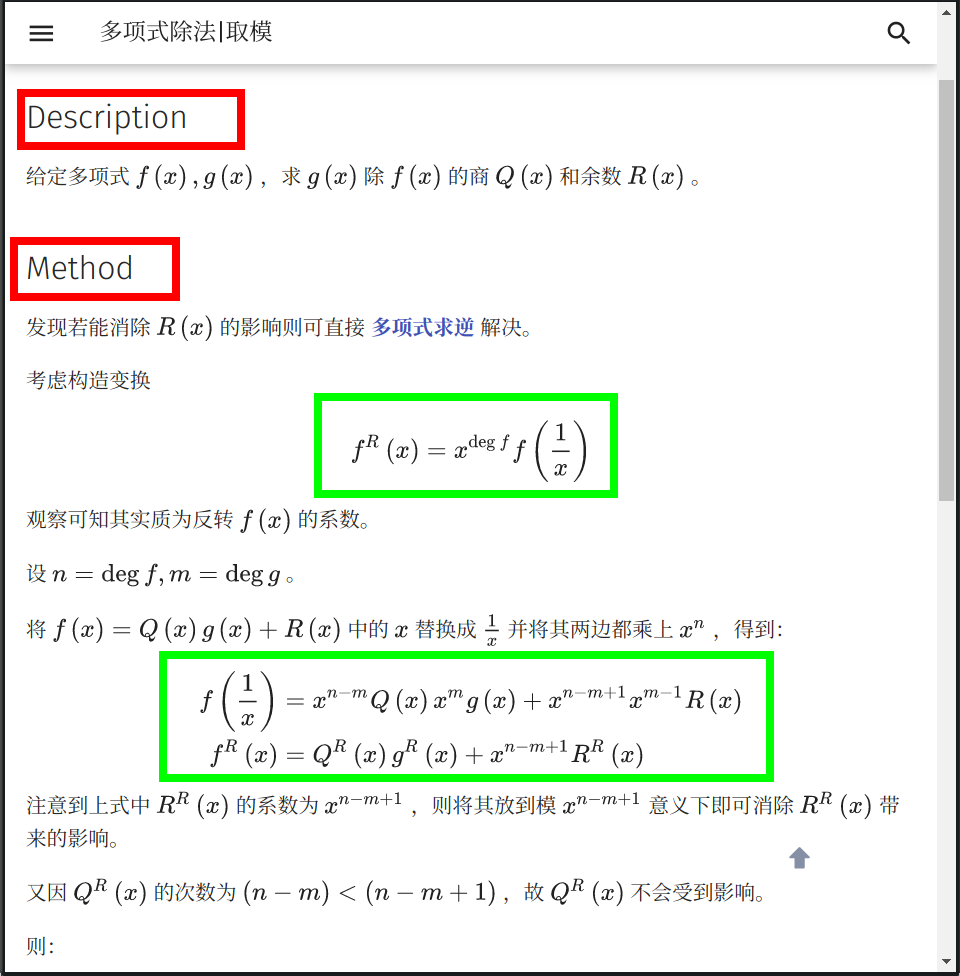 使用 MkDocs 扩展语法,让例题题面与算法描述区分开.将代码折叠,可以让文章更紧凑.(毕竟看 Wiki 的大多数是了解思路,除了模板代码需要阅读外,习题的代码大多可以折叠.)在描述函数操作时,使用行内代码和 LaTeX 公式都是不错的选择.
