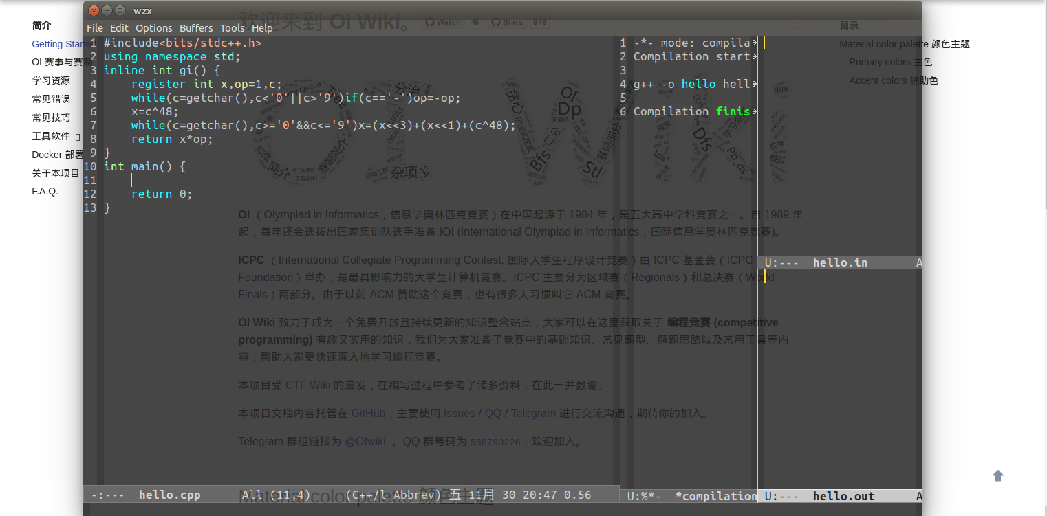 作为入门教程,这里仅介绍 Emacs 的基本功能,以及较方便地用 Emacs 编写、调试代码的方法.