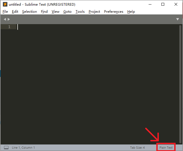 检查是否切换了语言,ST 默认新建文件为 Plain Text.